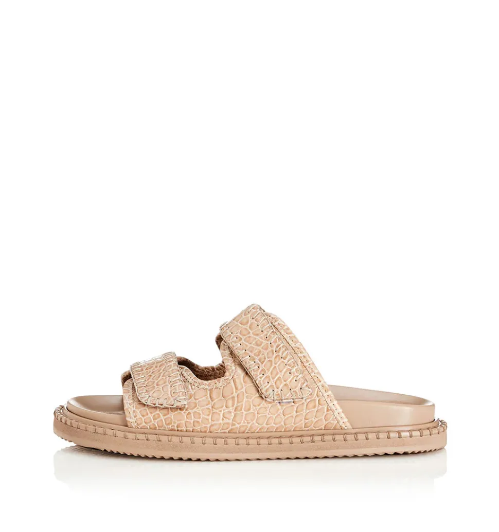 100% Leather Upper Croc Print Leather Comfort Moulded Footbed Adjustable Velcro Straps