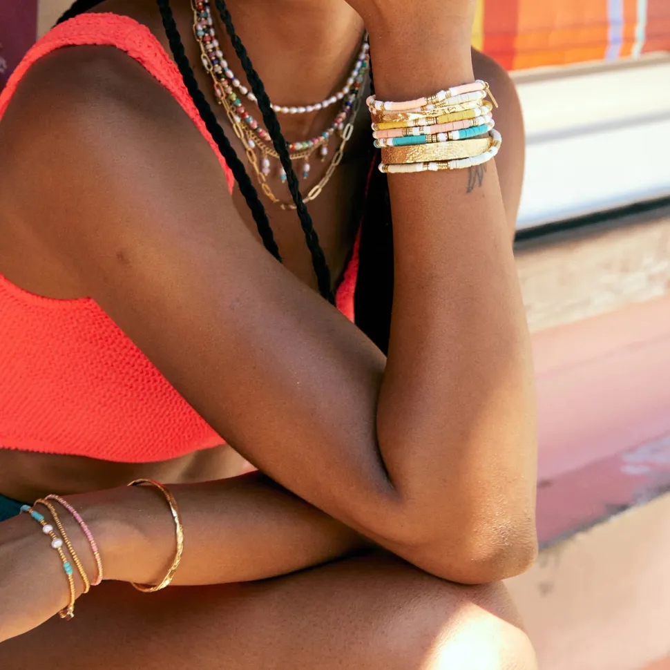 Beach style is on trend, and with the bright coloured Amari Bracelets you will be too! With the coolest range of colours to choose from, we recommend stacking them up, mixing and matching, and making this style super unique to you!
