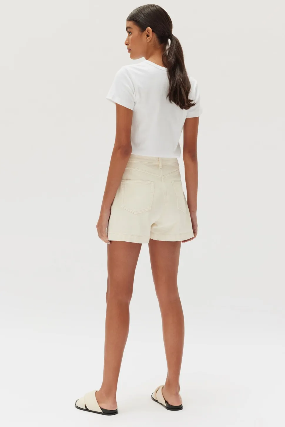 The boxy denim short in Ecru from Assembly Label is cut from premium cotton denim. These high-waisted shorts are designed with pockets and classic detailing.