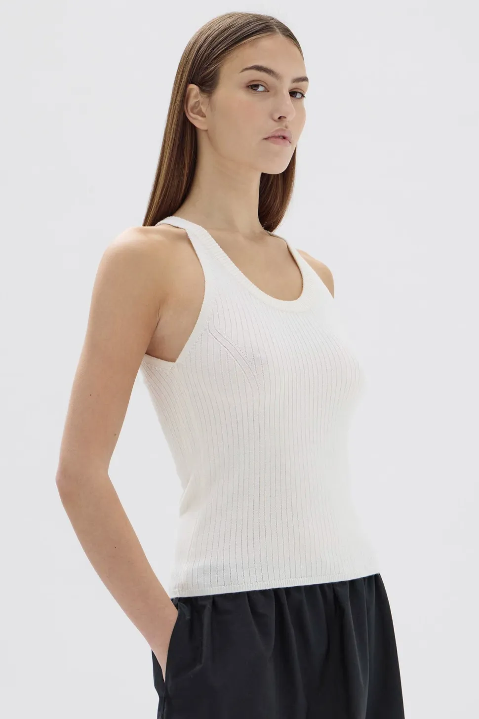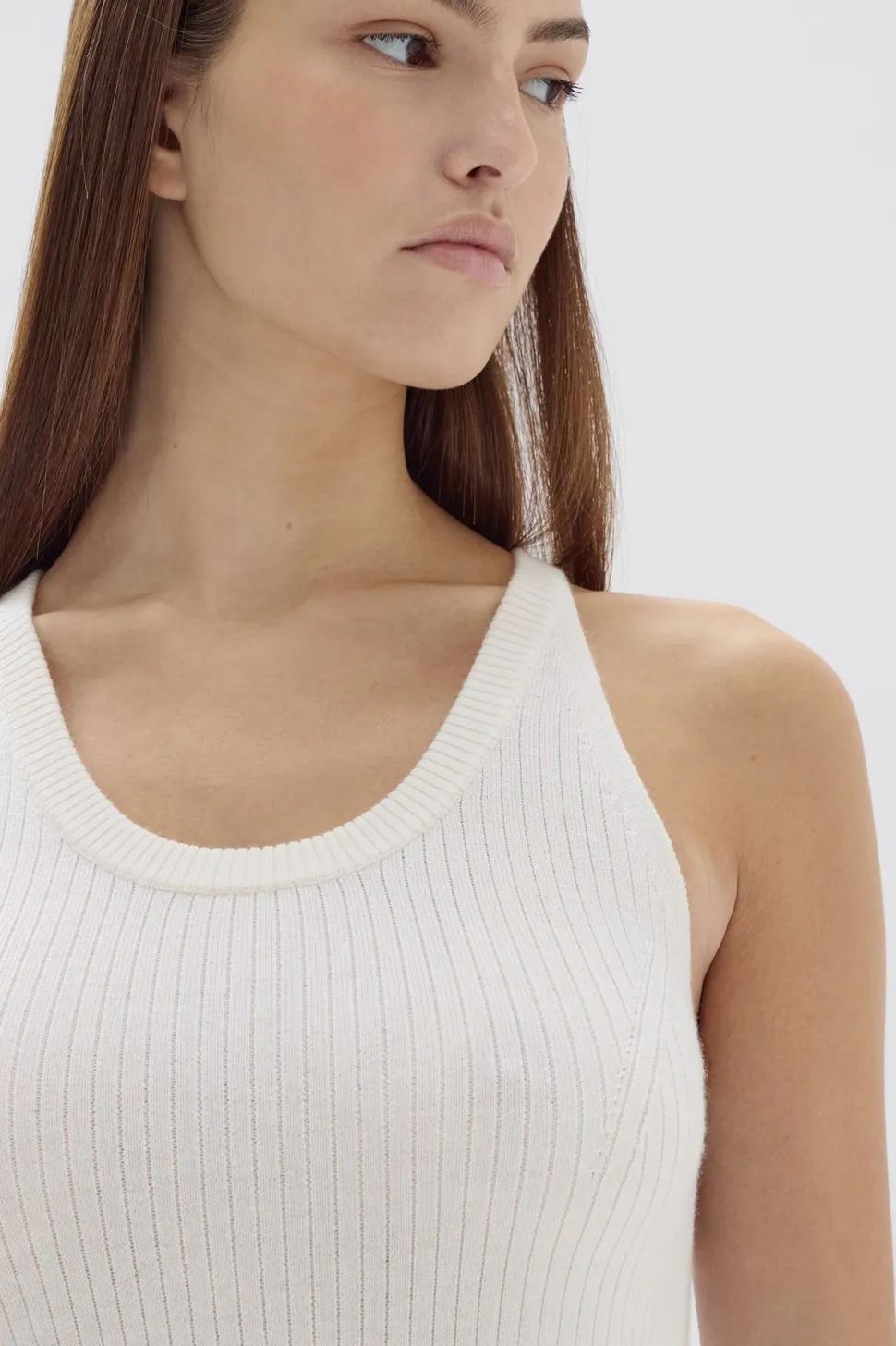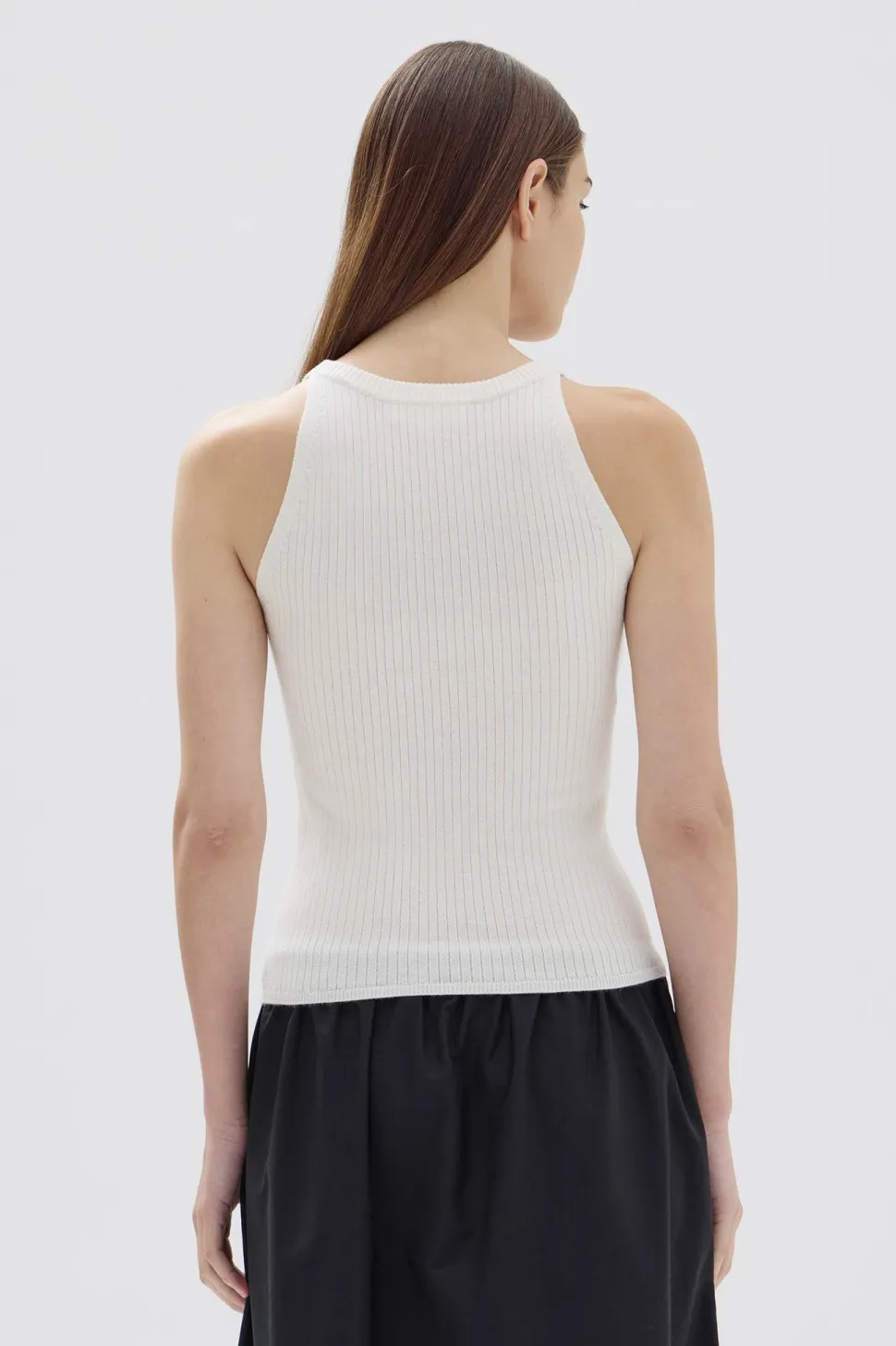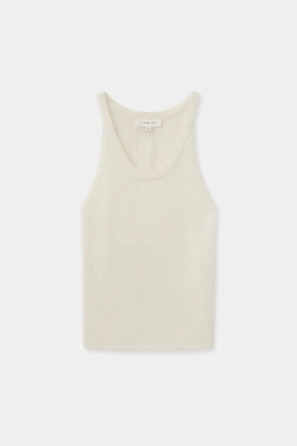 100% wool knitted tank, a layering essential for winter. Designed fitted with a soft rib knit texture.