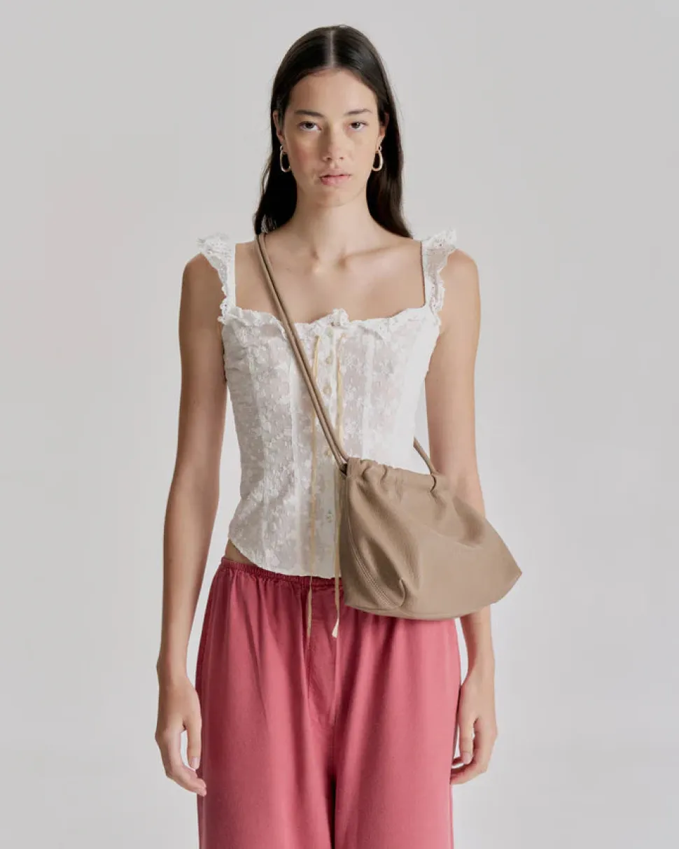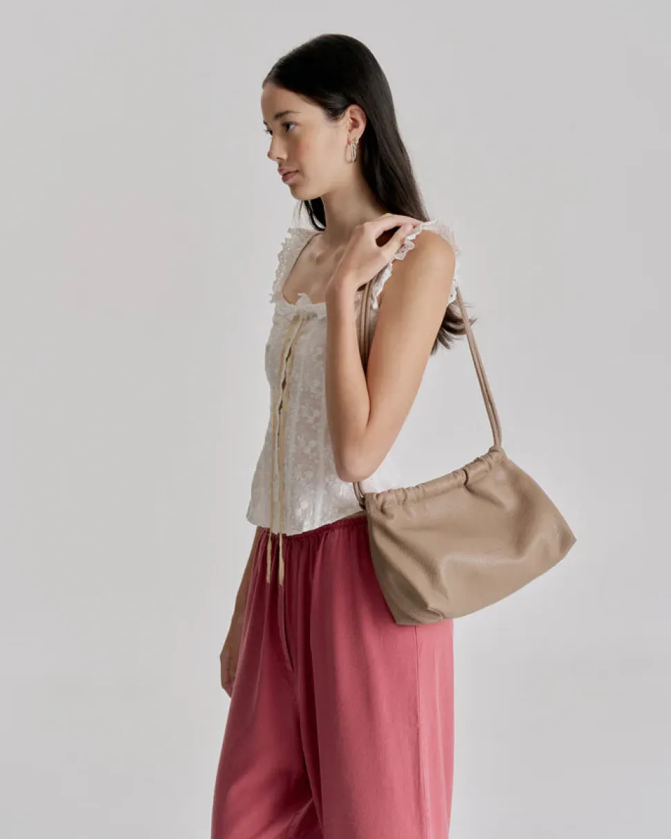 Introducing the Alma Bag, a tribute to endless summer twilights. The name Alma is taken from the Spanish word ‘Almeja’, meaning ‘clam’, alluding to its soft clamshell shape.