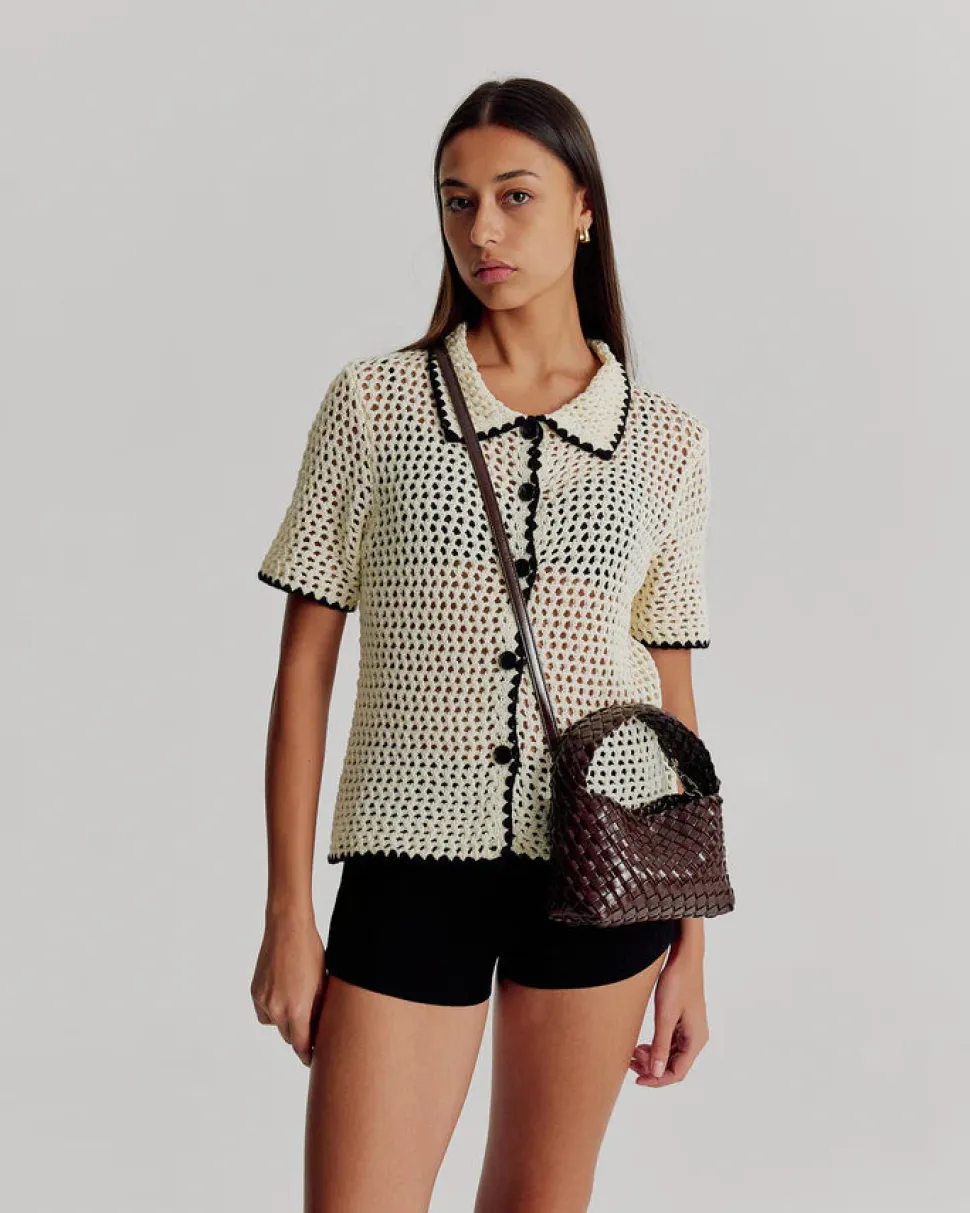 A contemporary essential, the Luca Mini Bag creates a textured statement. A boxlike base is complemented by a woven, tactile construction with a visual glossy crinkle effect. Look is unassuming in nature yet unforgettable in appearance, making the ideal event bag.