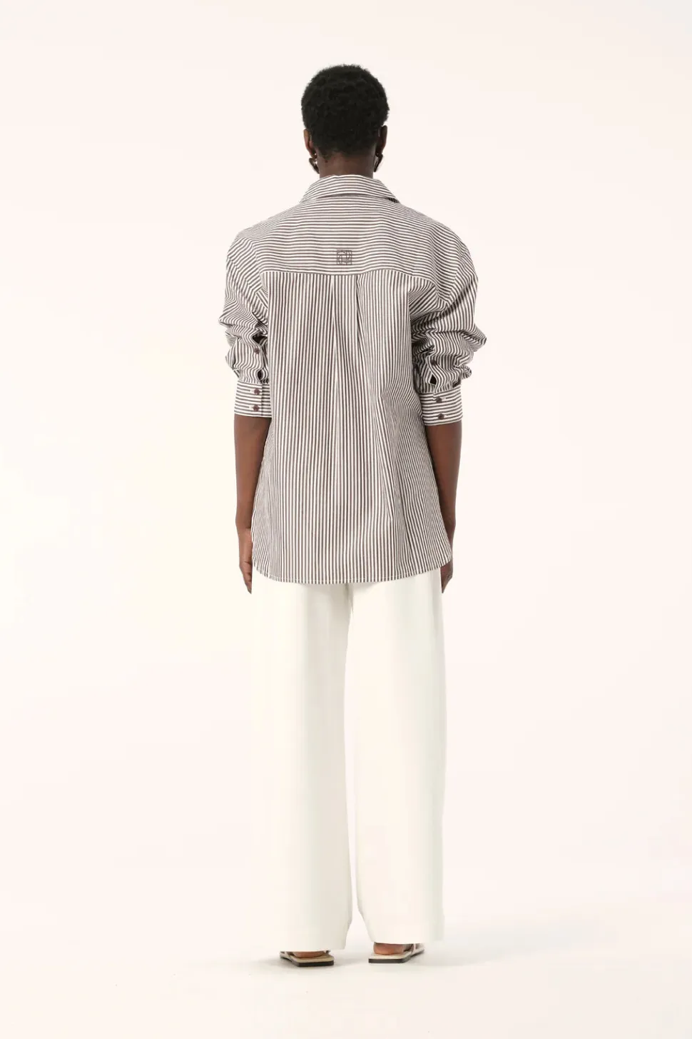 The Faye Shirt adds a warm hue to your wardrobe staples and is made from 100% natural cotton and features a classic stripe pattern in a warm chocolate brown against a neutral white base. Cut to a relaxed, slightly oversized silhouette, the Faye Shirt is suitable for layering over basics with denim essentials or styling with crisp tailored pieces for a look that combines masculine design with feminine sensibilities.