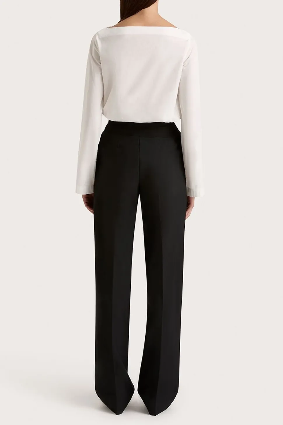 An elevated essential, this long sleeve top features a high neckline with a r elaxed silhouette that sits comfortably at the hips. Designed from 100% Cotton, it is intended to be worn over or tucked into a classic trouser.