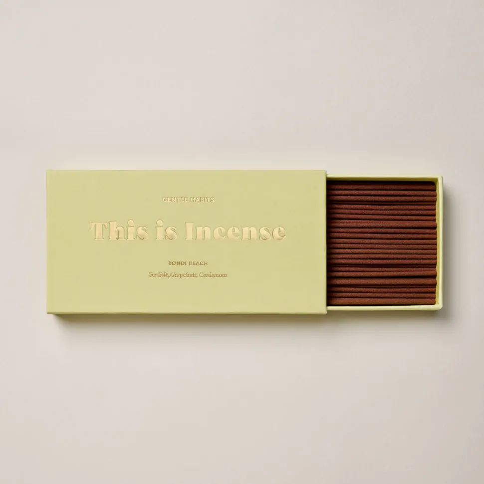 The Bondi Beach incense is delicate with unexpected with top notes of Grapefruit, middle sweet notes of Cardamom then grounded with Cedarwood.