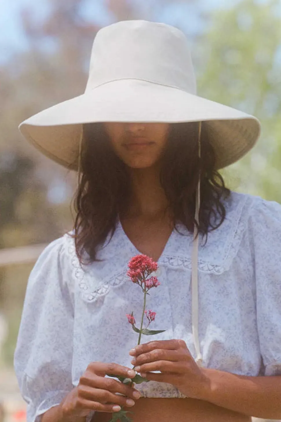 Made from 100% cotton canvas in a neutral beige tone, our new wide-brimmed holiday bucket is finished with a simple and secure necktie, ensuring this hat goes everywhere you do.