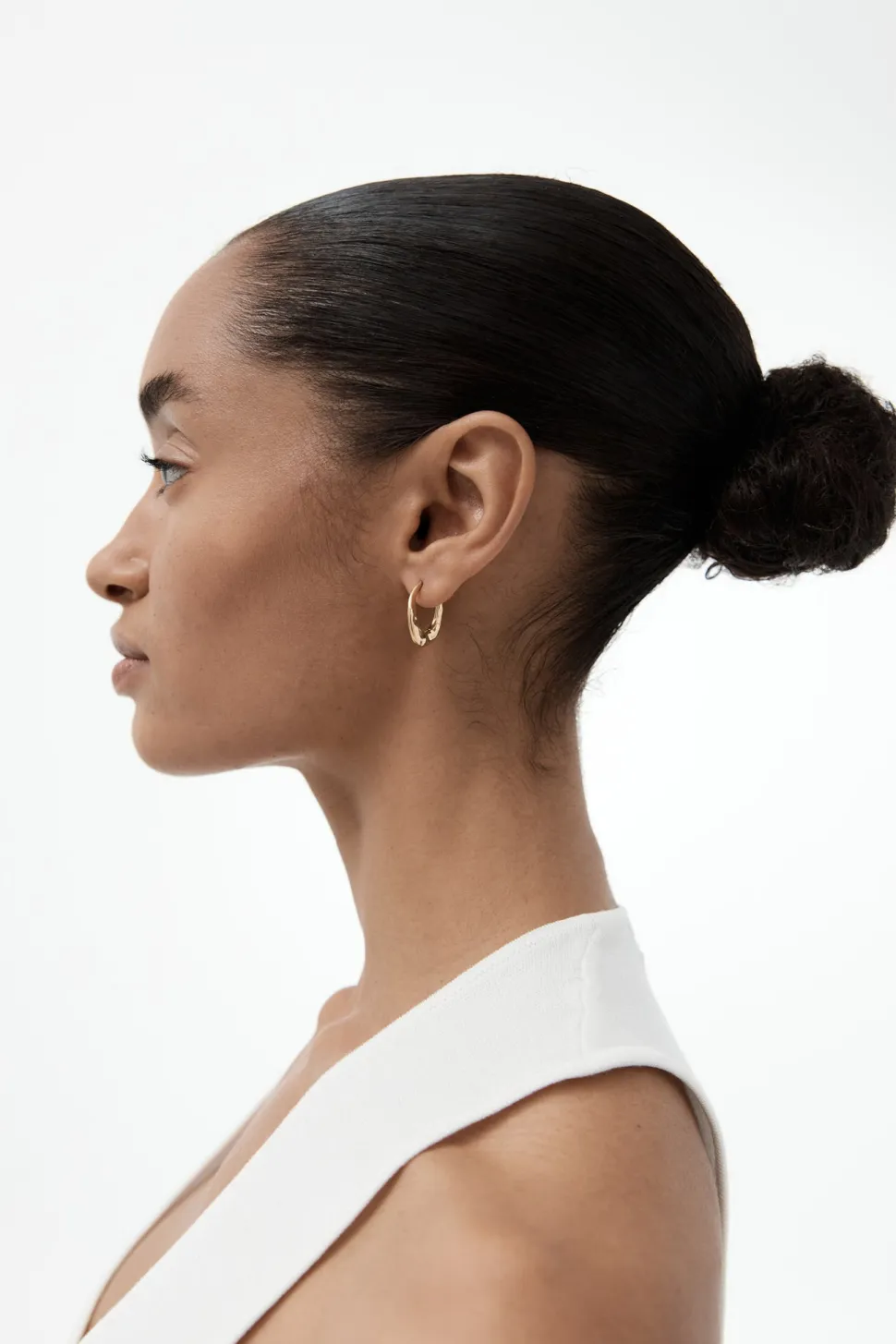 Recycled 14k Vermeil. 20mm rounded hoop. Lightweight with an unnoticed spring hinge clasp. Subtle smoothed organic text…