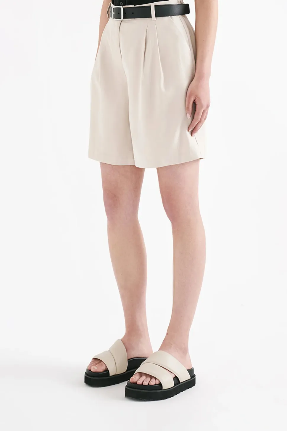 The Kit Tailored Short is made from a classic suiting fabrication which has a smooth, structured hand feel. The silhouette is a classic Bermuda shape worn high on the waist and relaxed through hip and leg. Features include a functioning fly front, elasticated on the back waistband and front pleats.
