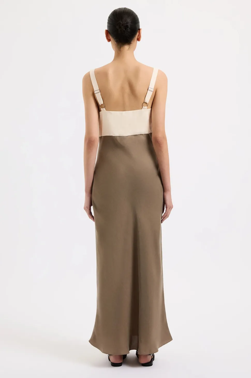 The Seshni Tencel Slip Dress is made from a Tencel blend fabrication with a soft, sueded hand feel. Cut on the bias, this silhouette drapes over the body softly and finishes ankle length. Features include contrast coloured bust panel, v neckline with a gathered under bust seam and thick adjustable shoulder straps.