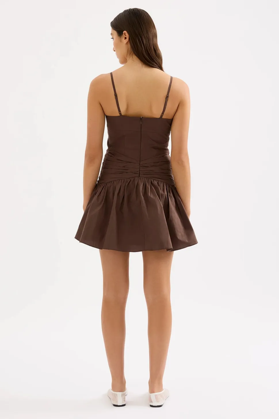 The Skarla Mini Dress is made from a cotton poplin which has be washed for a smooth, crisp hand feel. The silhouette is feminine with a fitted bodice, dropped waistline and full mini skirt. Features include gathered waist panel, adjustable straps and invisible zipper opening.