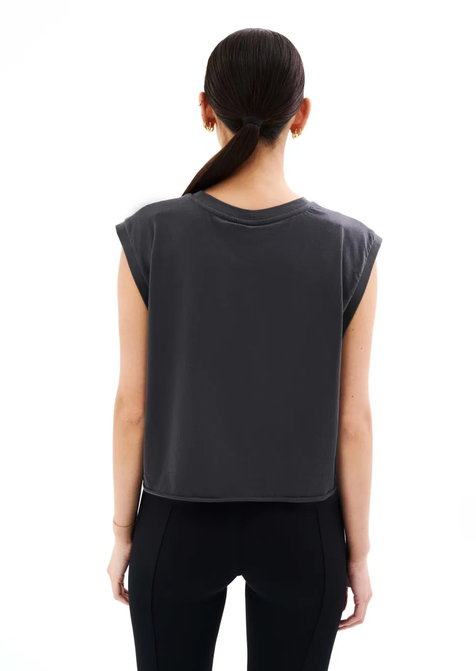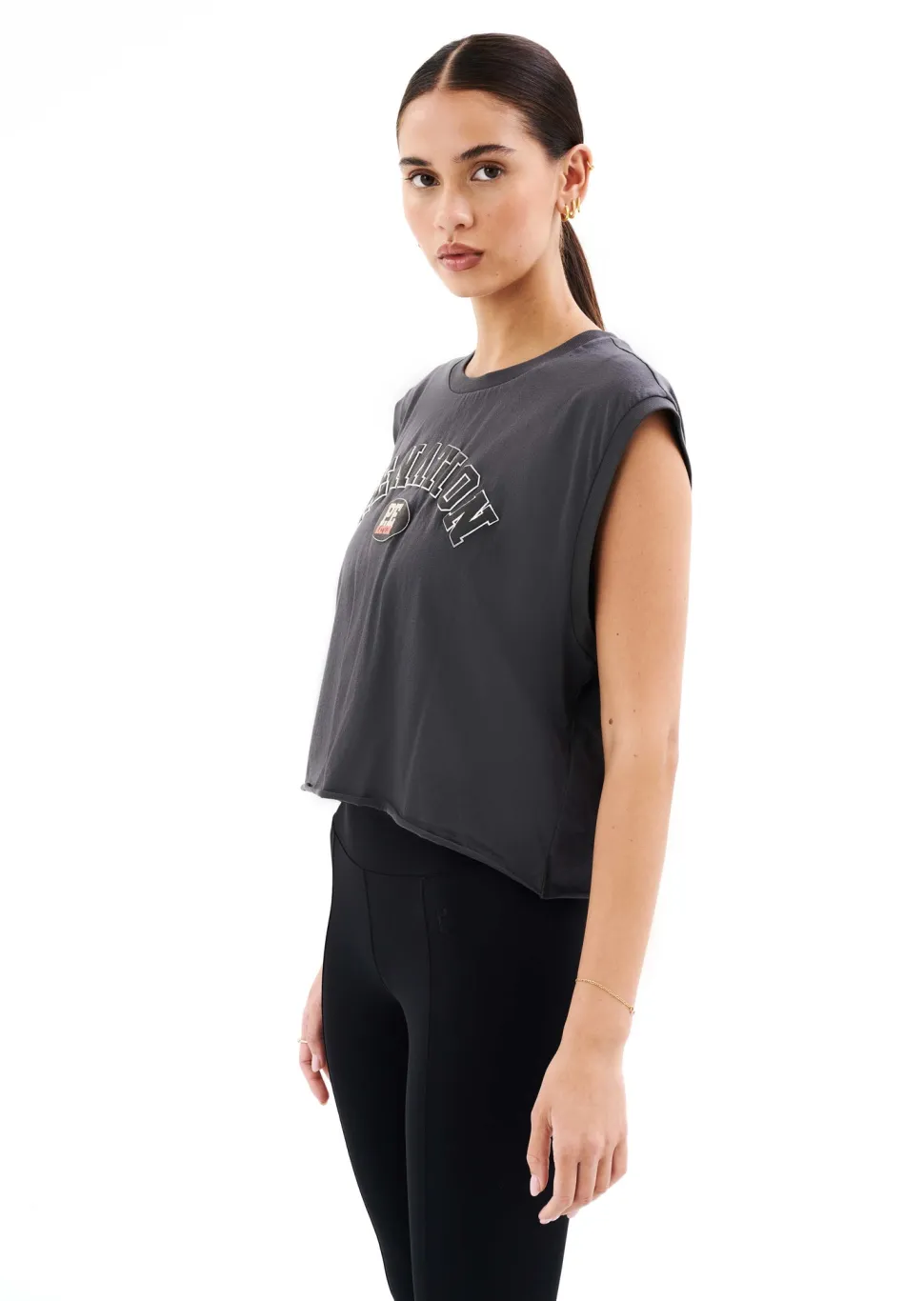 The Solrad Tank in Dark Shadow by P.E Nation, designed to be worn from workout to water. A lightweight cropped T-shirt featuring buttery soft organic cotton jersey, take your all day looks to the next level with the Solrad Tank.
