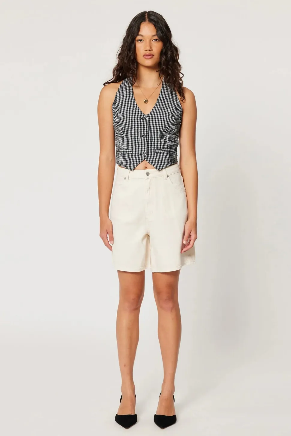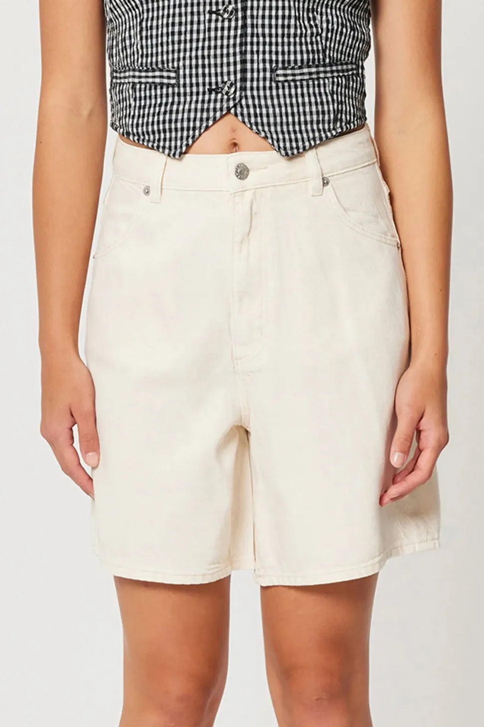A high rise, mid-length denim short. Crafted in a soft hand feel lyocell / cotton blend.