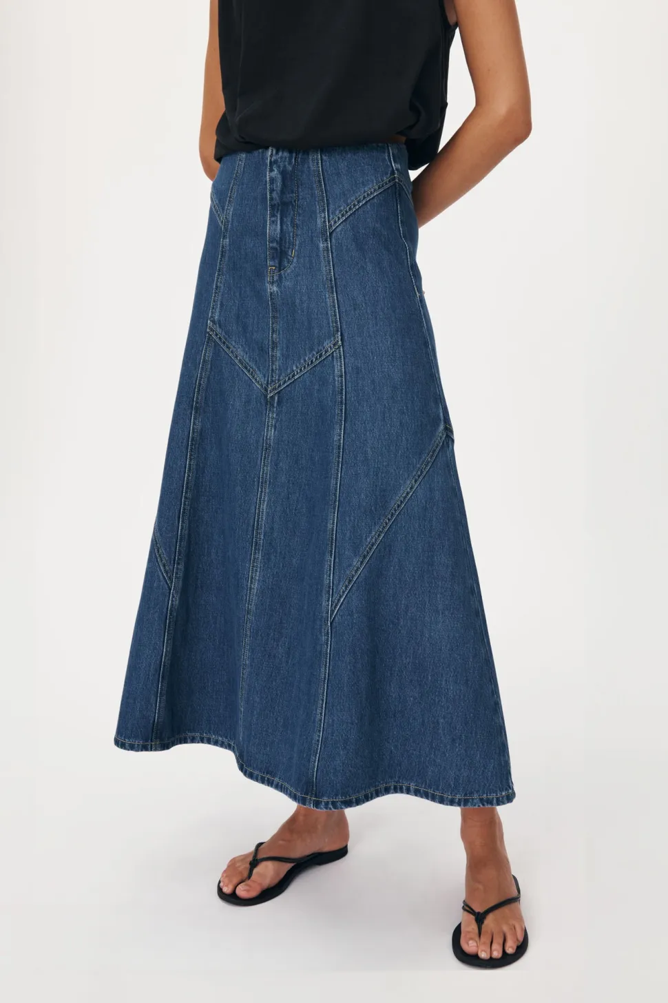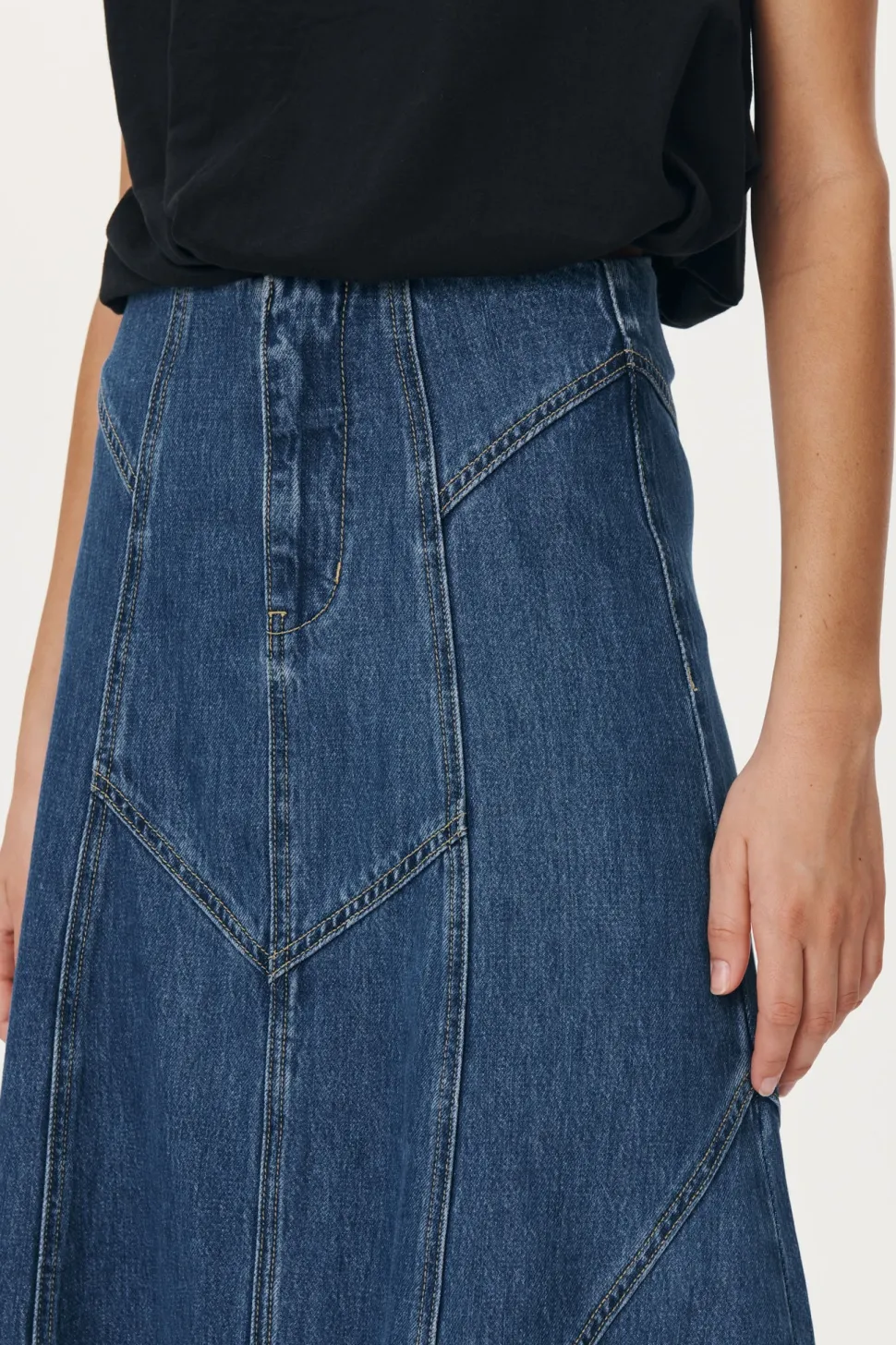 Mid-weight Denim panelled midi skirt