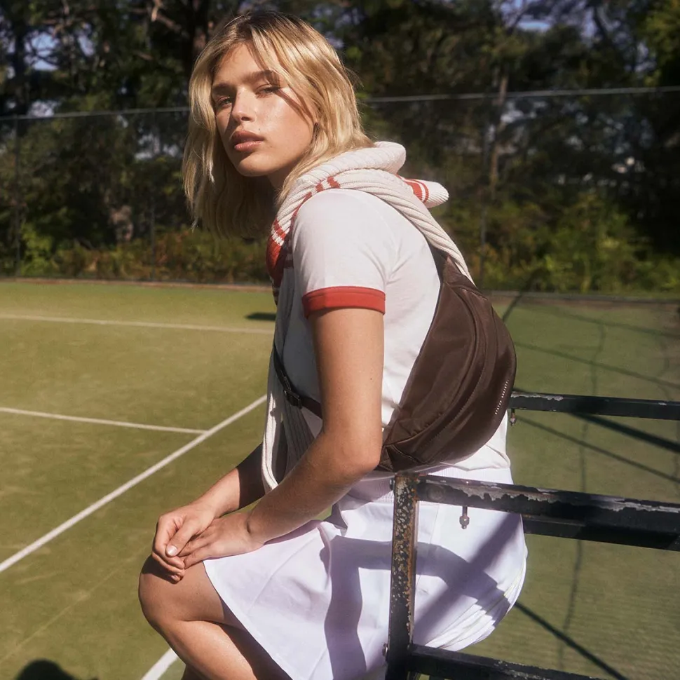Designed to hug tight to your body, the Piper bum bag is made from premium reinforced recycled polyester and is the perfect ‘go-to’ bag for everyday. Features include, a custom status anxiety lining, recycled webbed strap and a zipper close on front and back.