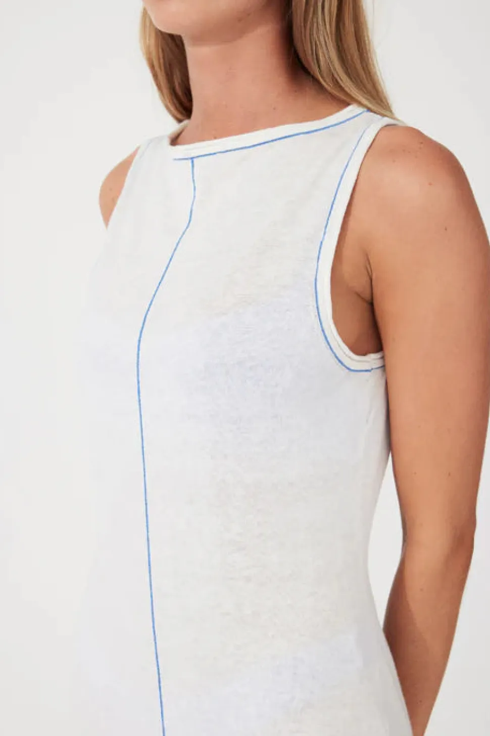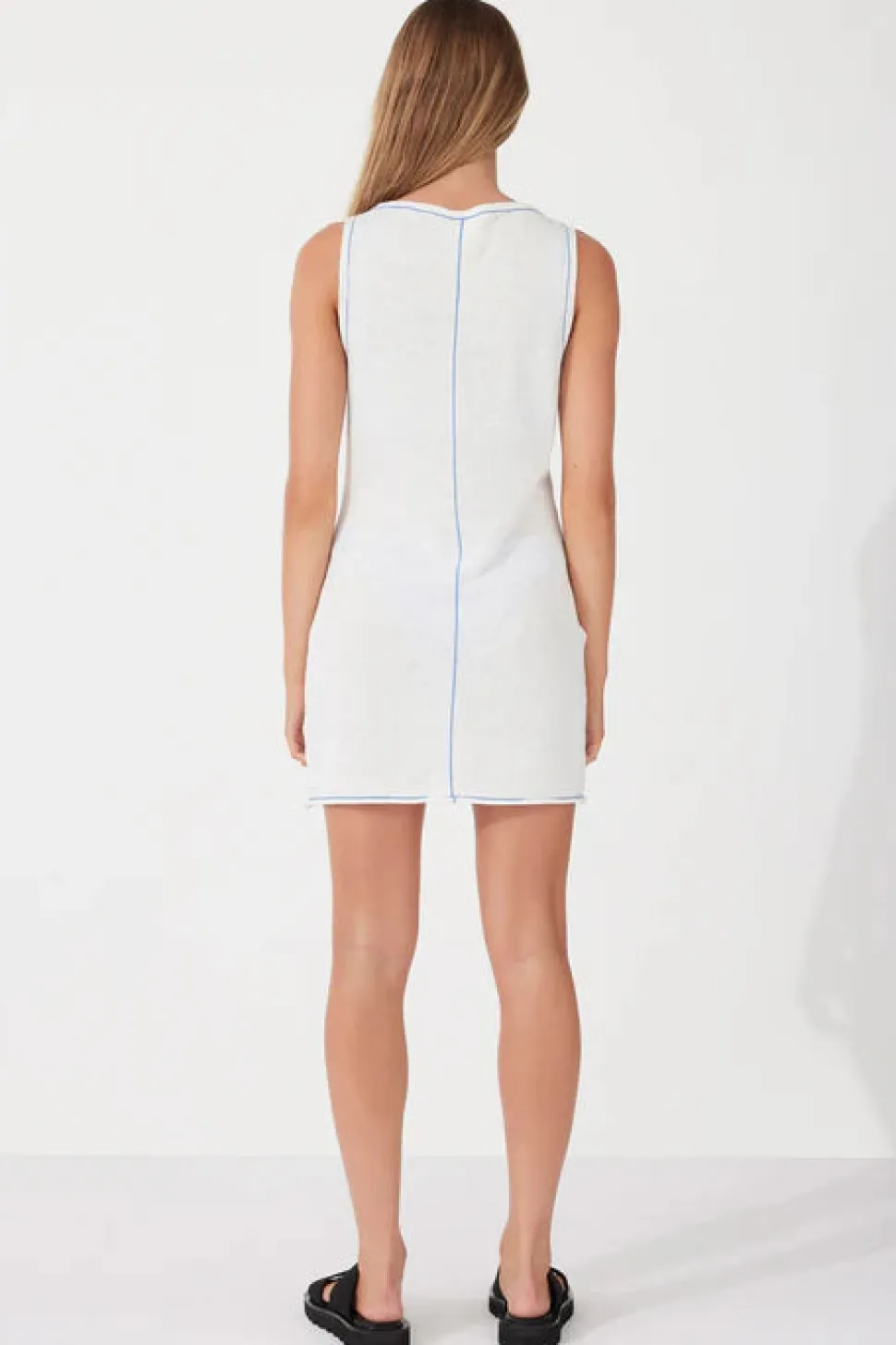 The Milk Contrast Knit Mini Dress by Zulu & Zephyr is a soft, lightweight, throw-on essential, featuring a relaxed short fit, and contrast trim detailing in a vibrant marine blue. Pair this with black sandals to take you from poolside to party.